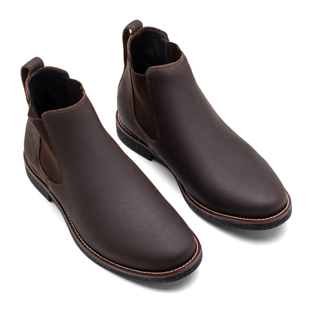 A Botina Dust traz a essência do campo em um design robusto e marcante. Confeccionada em couro Crazy Horse café, conhecido por seu acabamento envelhecido e toque natural, ela traduz o equilíbrio entre o visual rústico e o conforto refinado da Garhen.